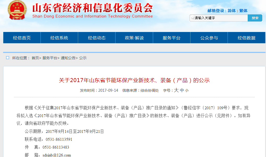 2017年山東省節(jié)能環(huán)保產(chǎn)業(yè)新技術、裝備(產(chǎn)品)征集和推廣工作,是由山東省經(jīng)濟和信息化委員會、山東省人民政府節(jié)約能源辦公室組織開展,旨在為鼓勵和支持我省節(jié)能環(huán)保產(chǎn)業(yè)新技術新裝備(產(chǎn)品)開發(fā)和應用,充分發(fā)揮先進技術、裝備(產(chǎn)品)的示范帶動作用,推動我省節(jié)能環(huán)保產(chǎn)業(yè)穩(wěn)步發(fā)展,助力全省新舊動能轉(zhuǎn)換。
